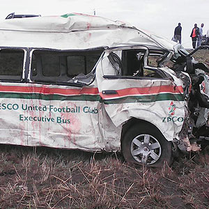 The Zesco United vehicle is said to have collided with a Mitsubishi Pajero that had lost control. Sources at the accident scene reported that the driver of the Zesco United bus died on the scene as did three others on the other vehicle.